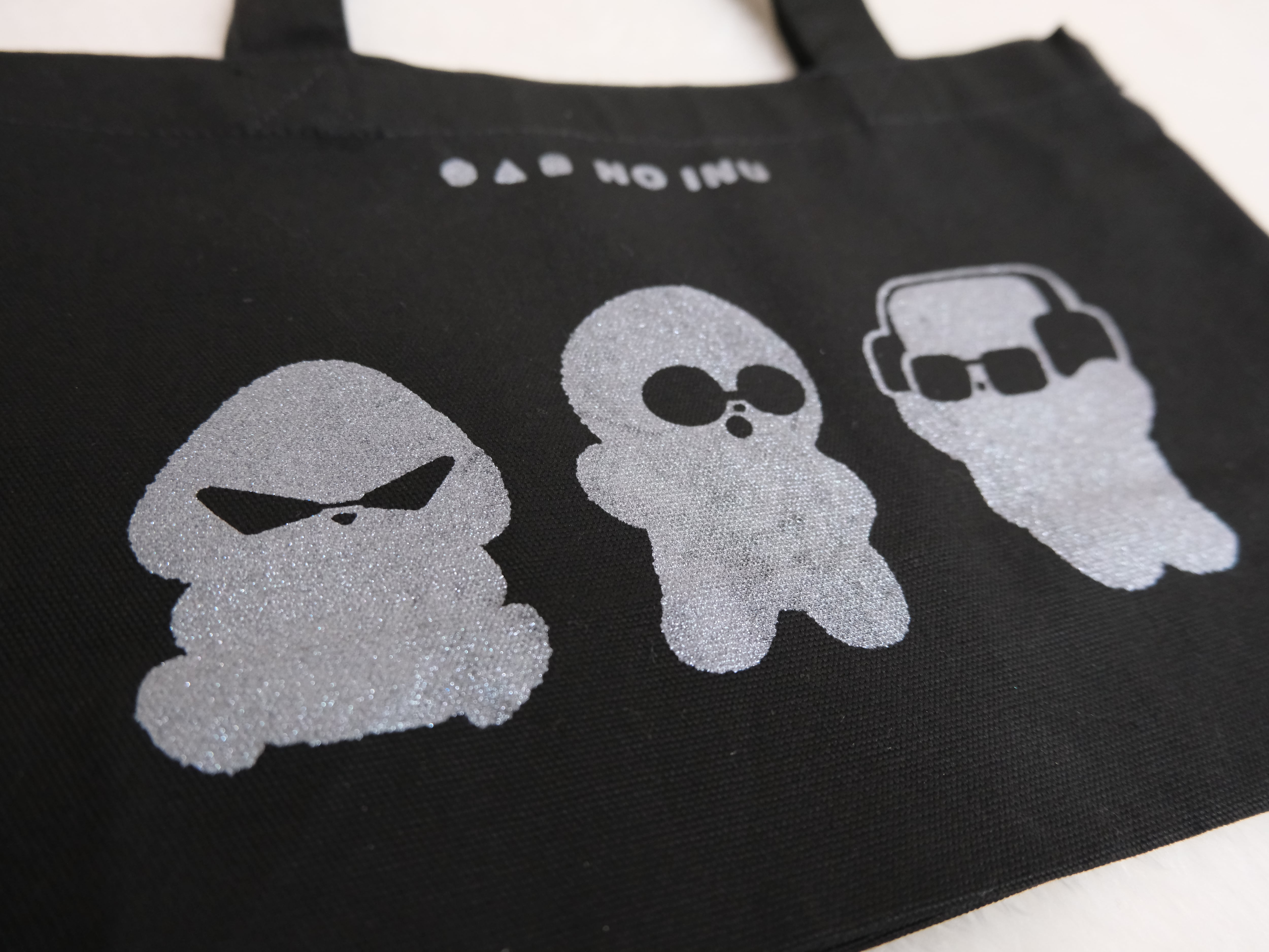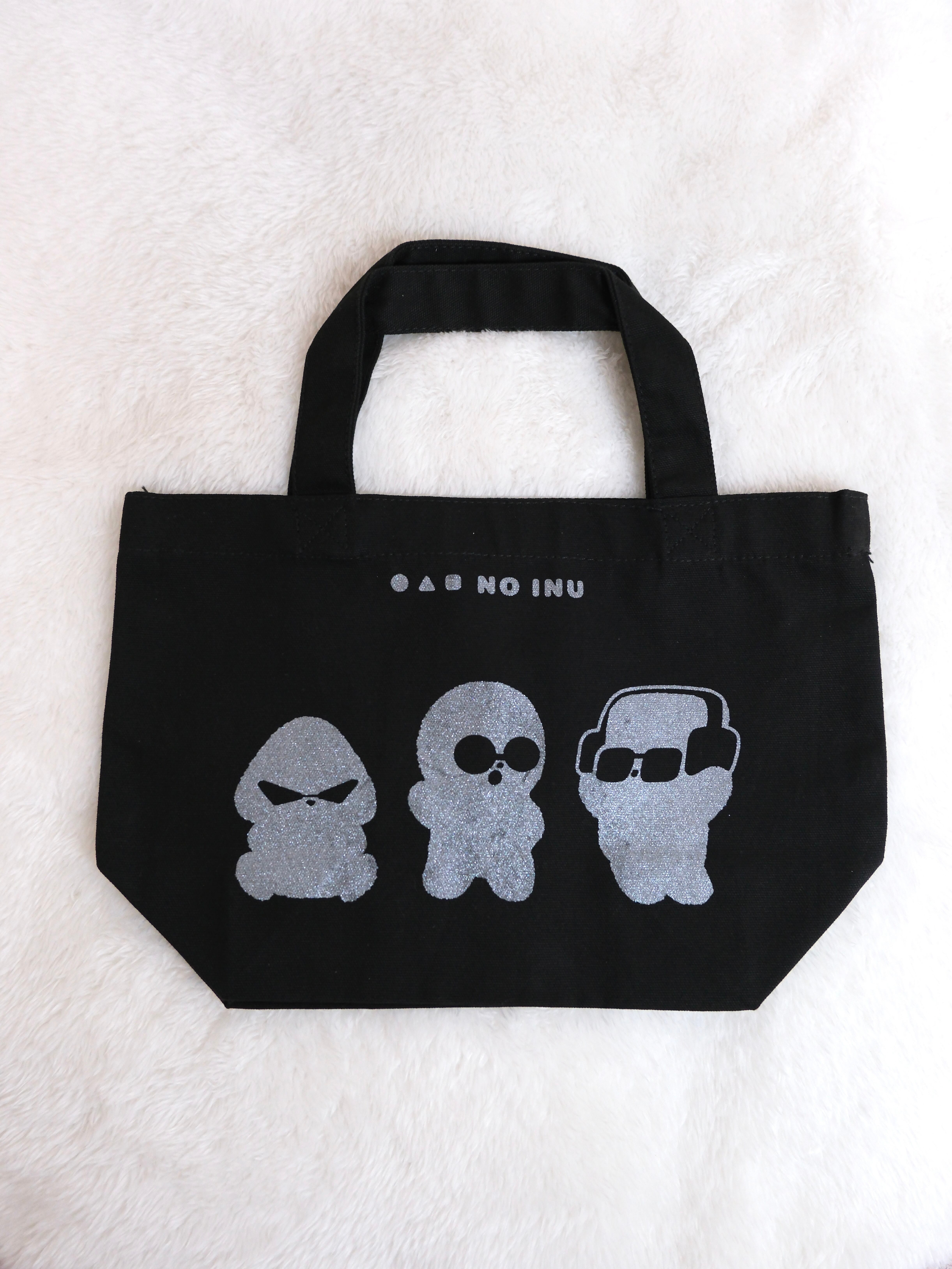 ○△□ NO INU の3匹がキラキラシルバープリントのランチトートバッグです!